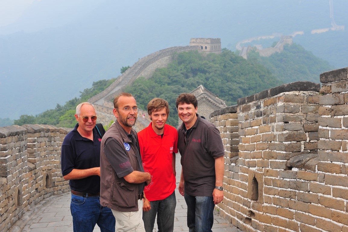 Gegen 1.30 Uhr am frühen Nachmittag erreichten wir die Große Mauer bei Badaling und freuten uns auf die Begrüßung durch den New Beetle Club Peking und das gemeinsame Fotoshooting. Auch der deutsche Botschafter Dr. Schäfer und seine Frau waren bereits da, um uns zu begrüßen und ließen es sich nicht nehmen, selbst einen Beetle Cabrio zu fahren.