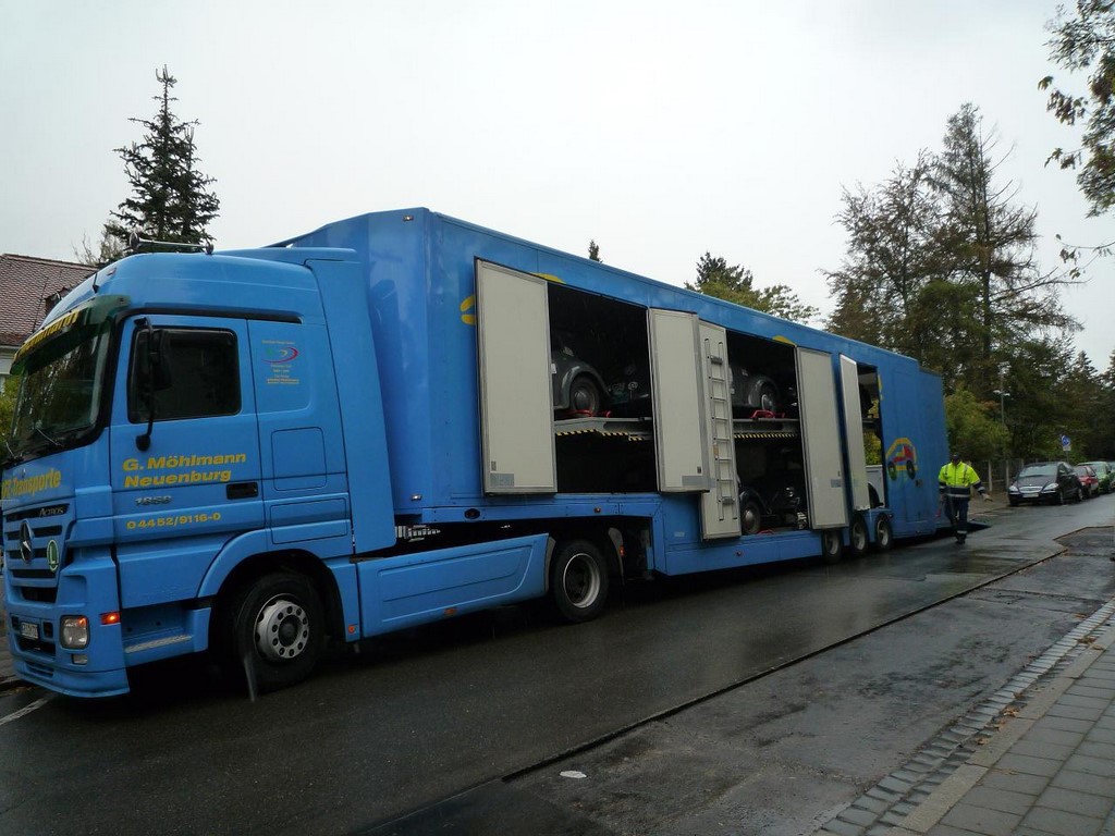 Die Begleitfahrzeuge gingen nach Wolfsburg und die Käfer wurden nach Erlangen im geschlossenen Autotransporter verfrachtet. Hier kamen sie am 16. Oktober an. Mittlerweile stehen meine drei Käfer wieder in der Sammlung und Bernds und Steves Käfer sind ebenfalls wieder zuhause. Der Transport zurück verlief reibungslos.